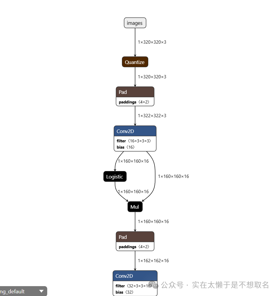 明确其网络架构,例如选用yolov8n_320_quant_pc_uf_od_coco-person.tflite模型,则代表着模型输入为320*320*3的RGB888类型图片,输出为单目标模型,F=2100,因此维度信息为:(1,5,2100),模型总大小为2.96MB。