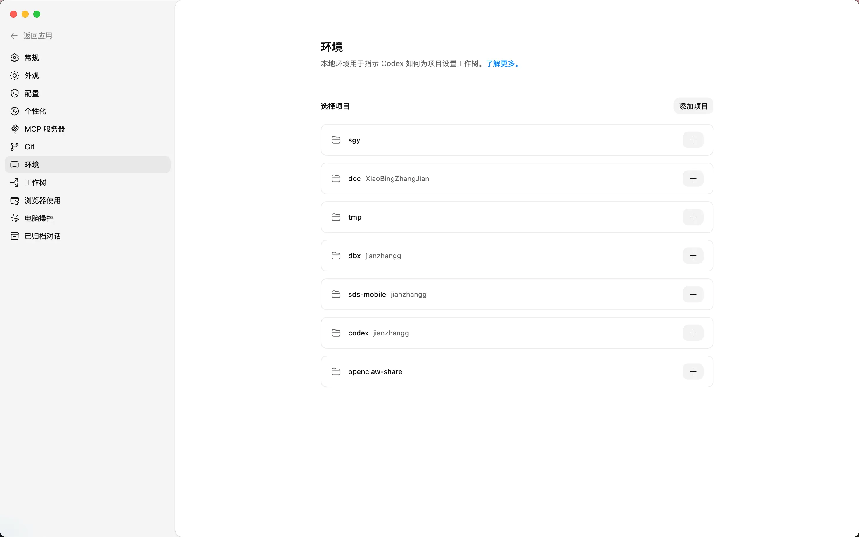 这一篇主要讲 Codex 设置页各个选项的作用,以及项目、环境、Worktree、Browser Use 等能力分别适合什么场景。