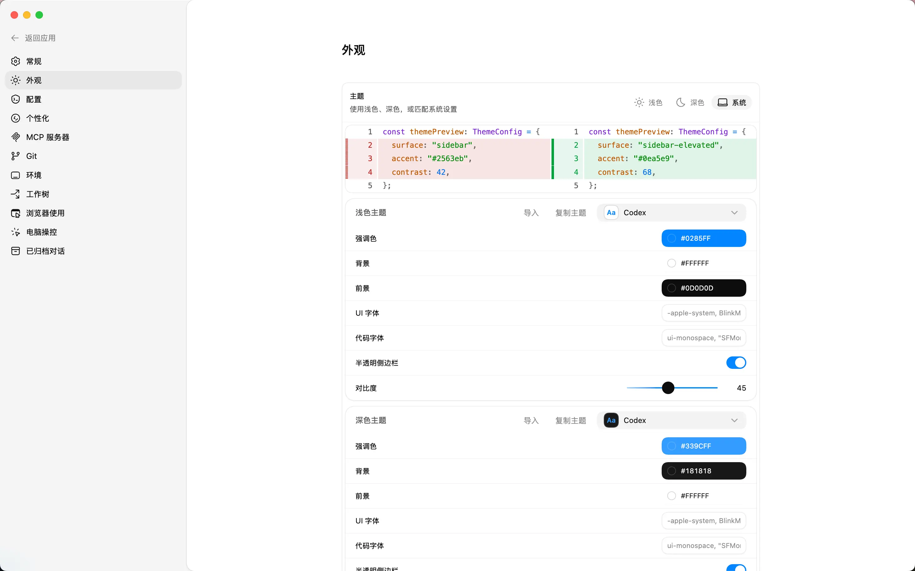 外观主要是主题、视觉风格之类的设置,没有太多使用门槛。按自己的习惯选即可,这一块不会影响 Codex 的核心能力。
