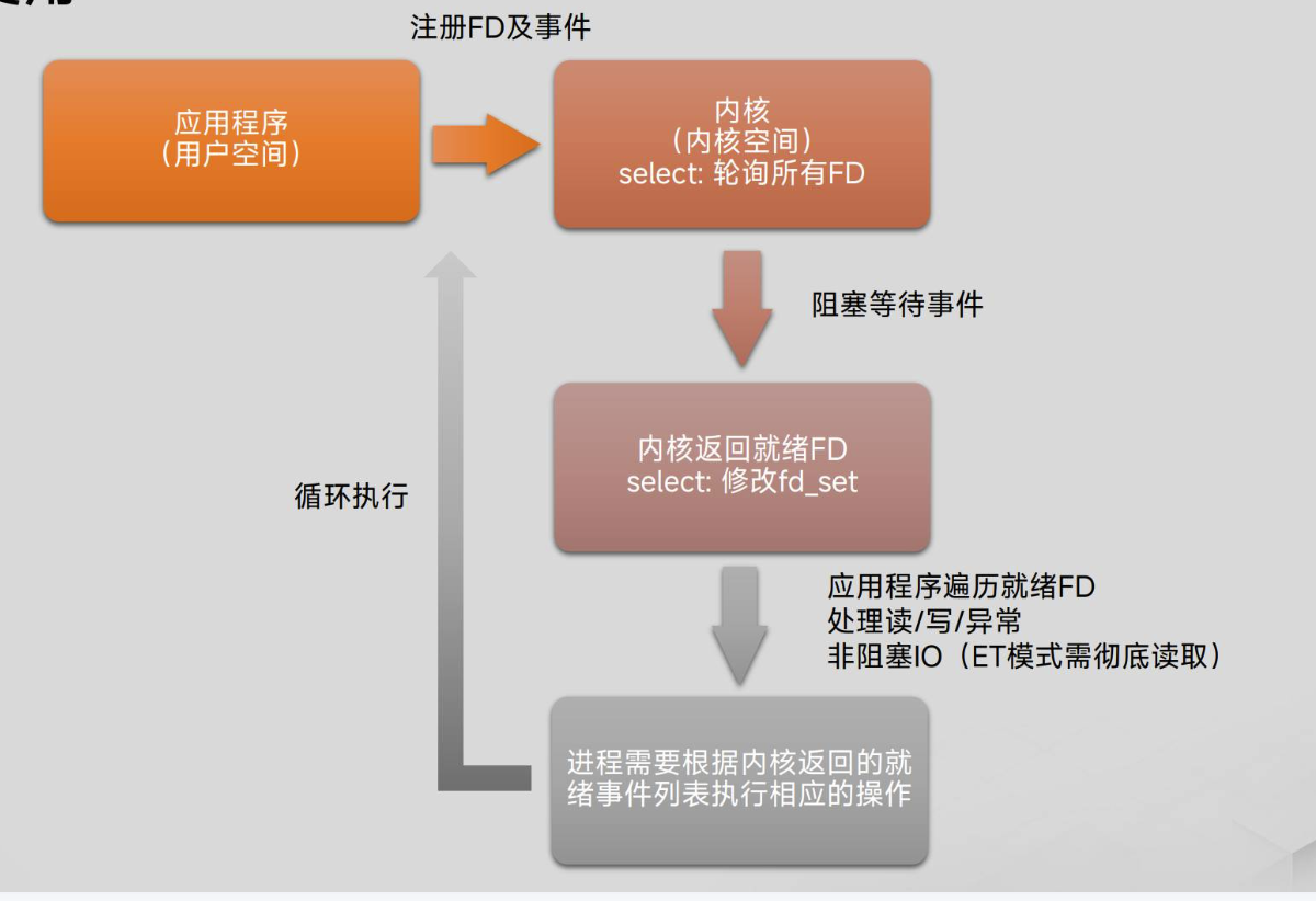| 内核第2步 | 无数据时 | 返回 EAGAIN 错误码,进程继续执行(不进入睡眠) |