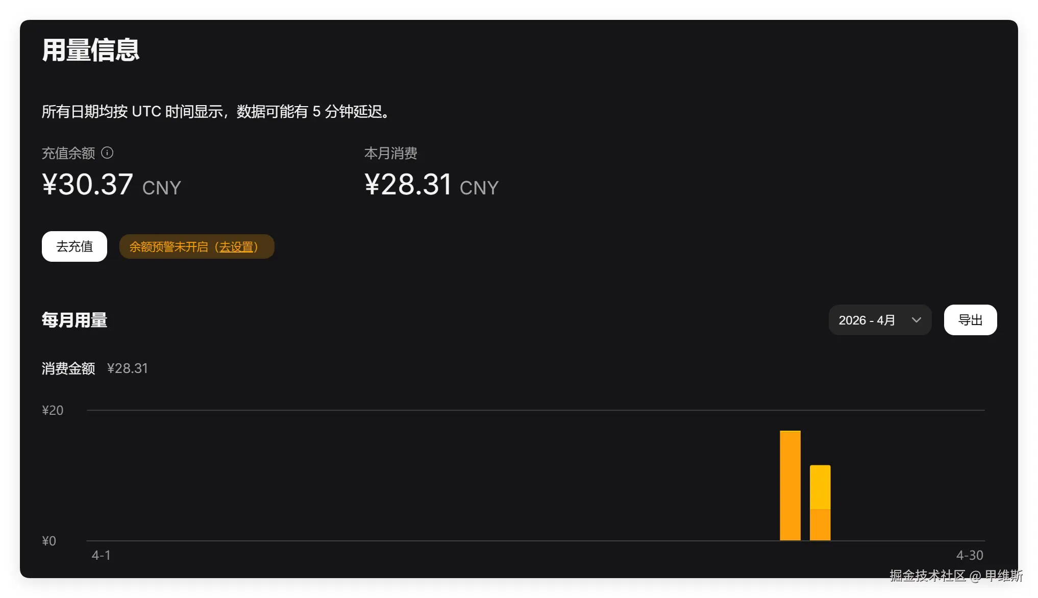 这次 V4 Pro一上来,立马就消耗掉了。然后又充了50,目前消耗了 28 元!