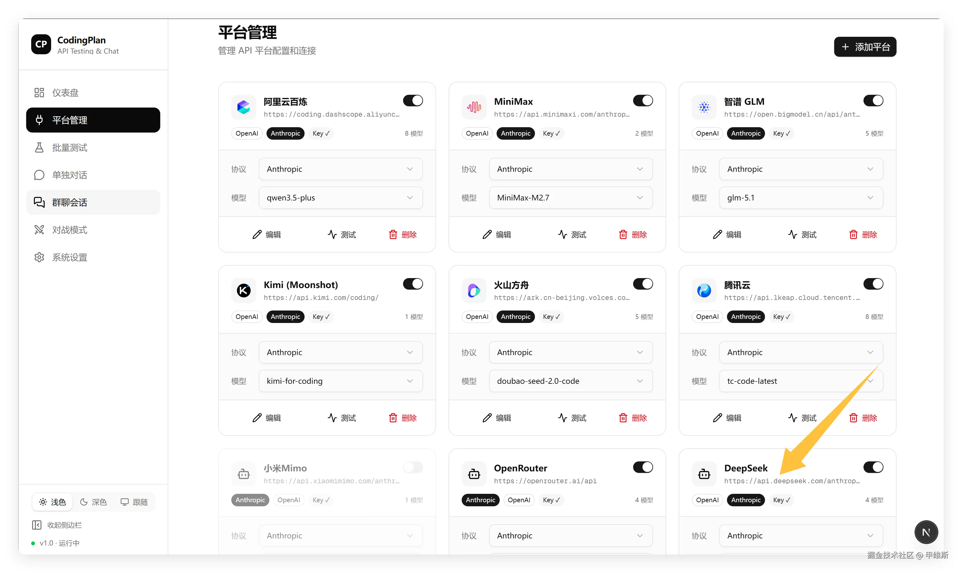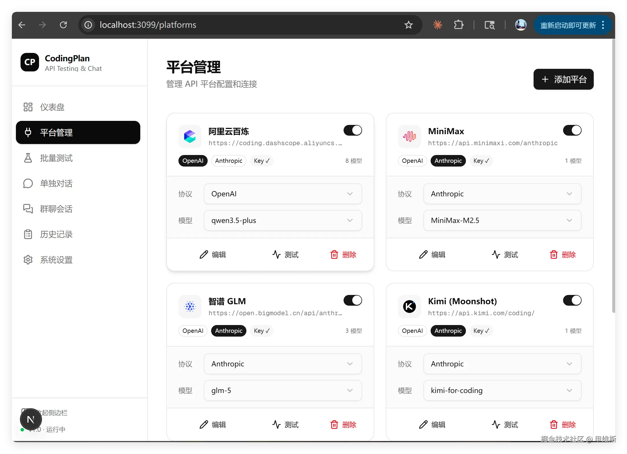 我的测试平台是手搓的CodingPlan 测试平台。
