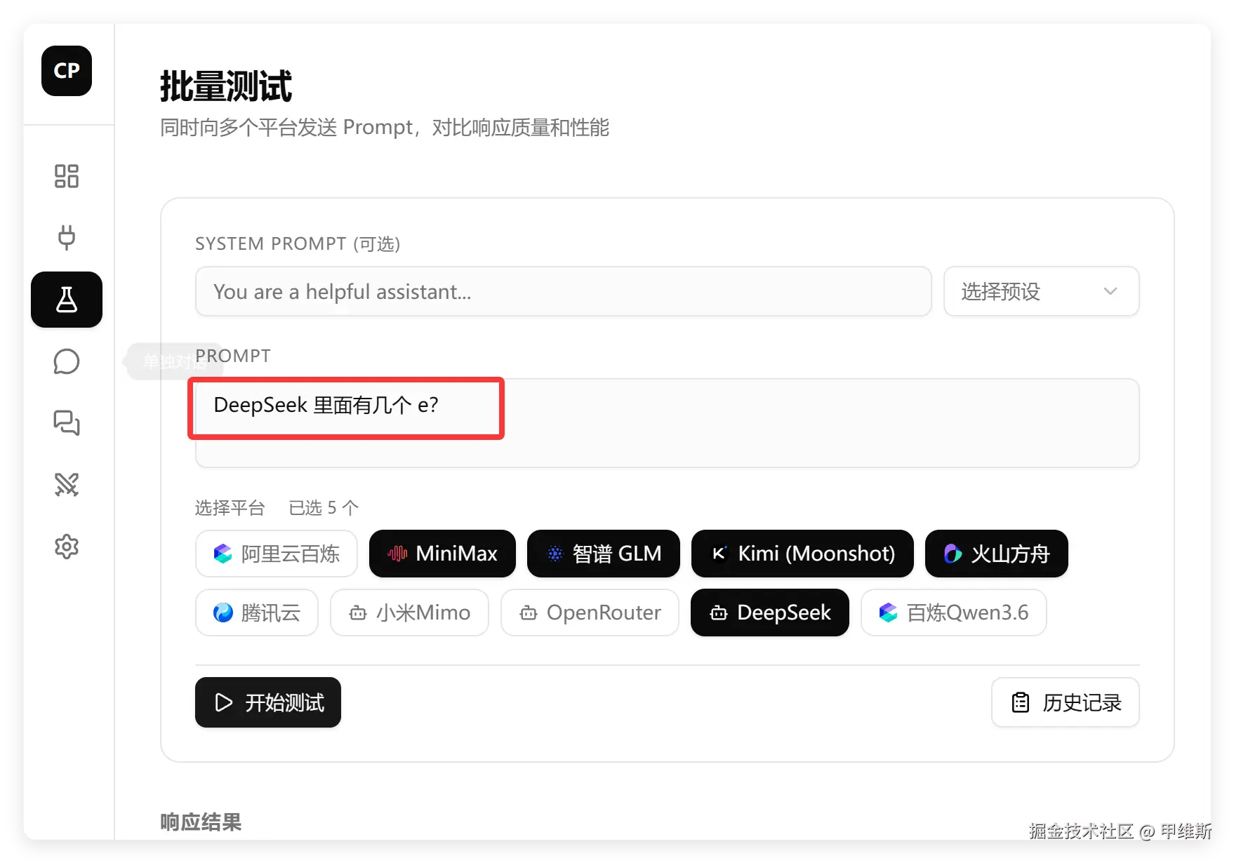 可以从多维度对 AI 模型进行对比测试!
