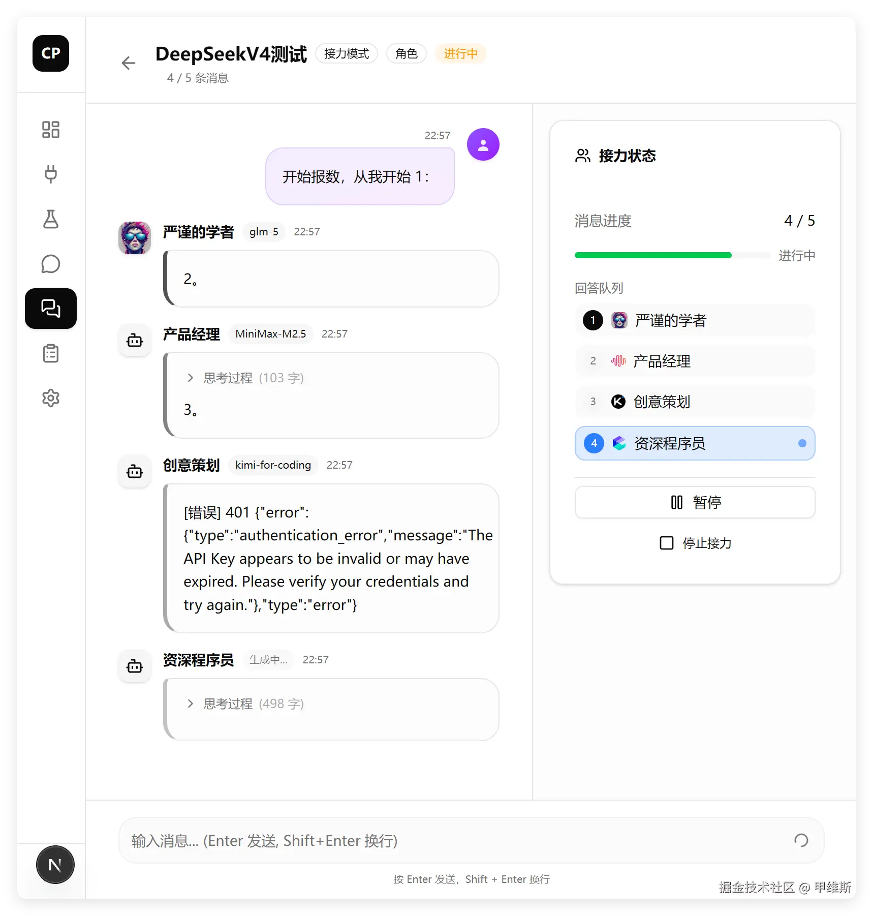 这个界面的处理是有一点复杂的。要自动生成一个随机排序的队列,然后根据队列顺序进行回答,要把其他模型的输出,作为自己的上下文。