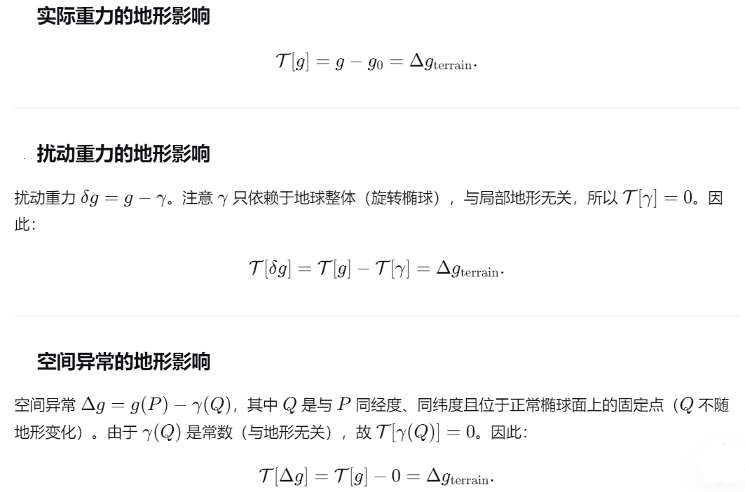 如果直接从空间异常和扰动重力的定义出发,理解可能会更加简单。