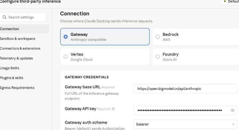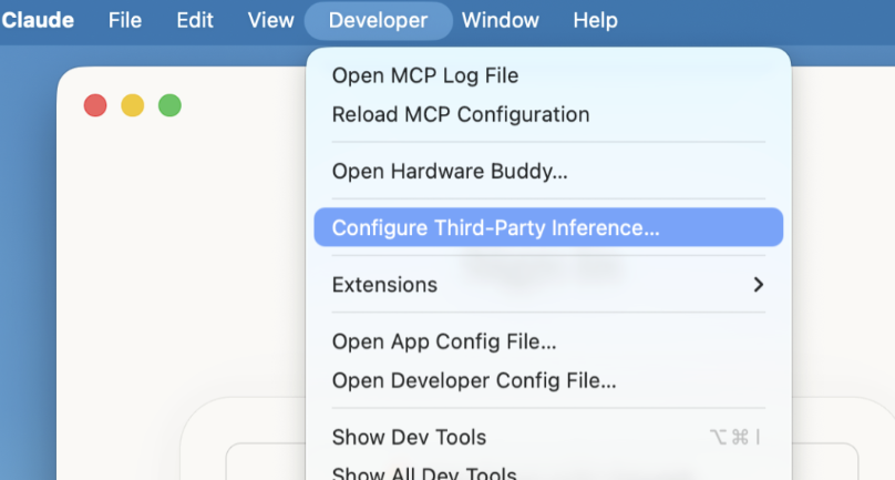 点击 Developer → Configure third-party inference配置第三方推理 / 配置第三方接口。