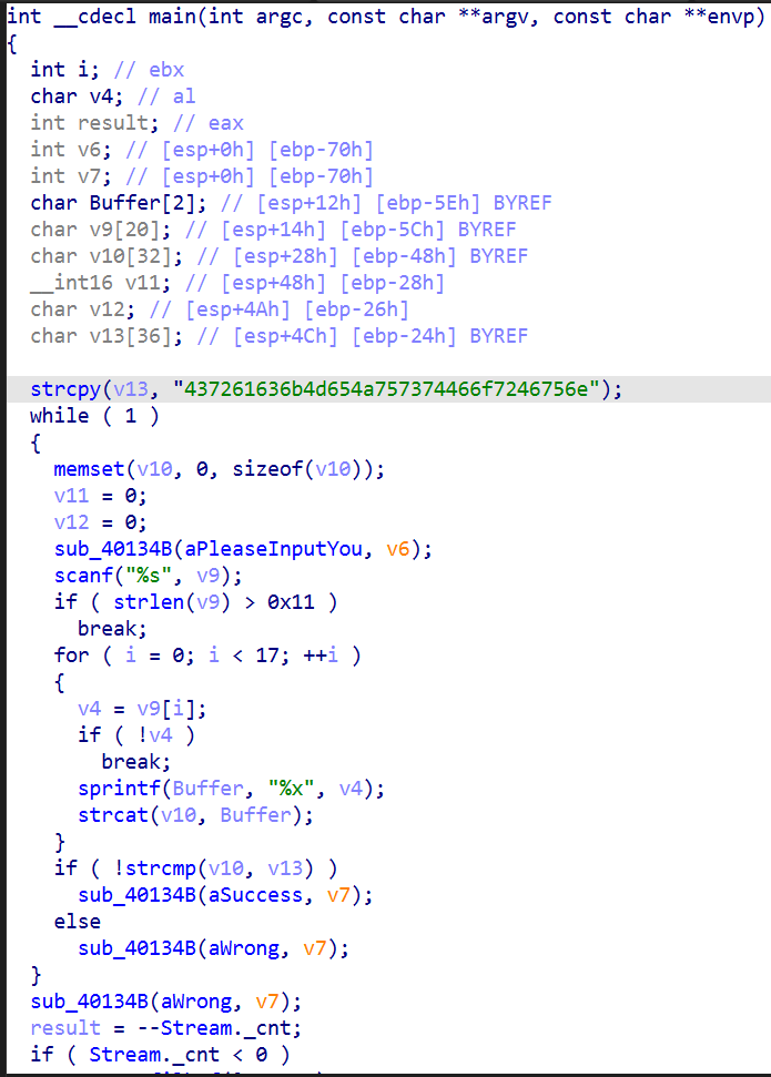 观察代码,发现只要将v13表示的16进制数转化为字符串即可