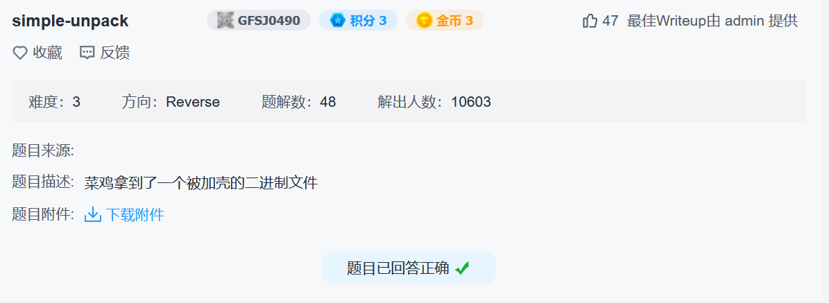题目说明是一个加壳的二进制文件