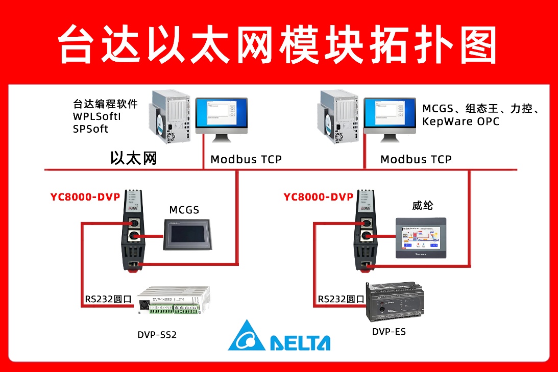 YC8000-DVP 双协议同时运行,适配威纶触摸屏本地监控与 SCADA 远程采集