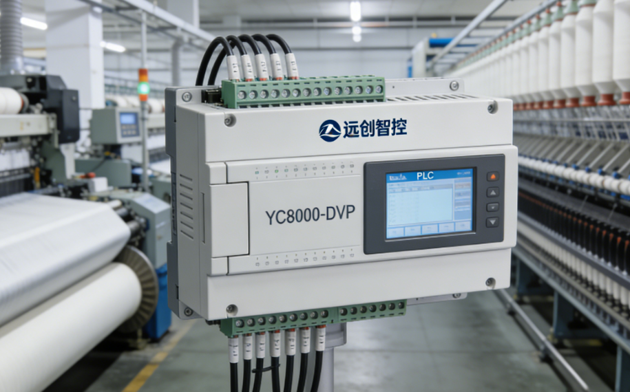 某化纤厂纺丝车间采用台达 DVP32ES00R2 PLC 作为螺杆挤出、纺丝、卷绕、牵引、温度闭环的控制核心,原系统通过 RS485 串口连接简易文本屏,仅支持温度显示与启停控制。随着化纤生产智能化与能耗管控要求提升,需要实时监控温度、压力、转速、张力、卷绕长度,并接入厂区 SCADA 监控平台。台达 DVP 无原生以太网口,无法满足数据远传与集中管控要求,整体更换成本高、改造周期长。最终采用远创智控 YC8000-DVP以太网通讯模块,实现稳定以太网升级,对接威纶触摸屏与厂区 SCADA 系统。