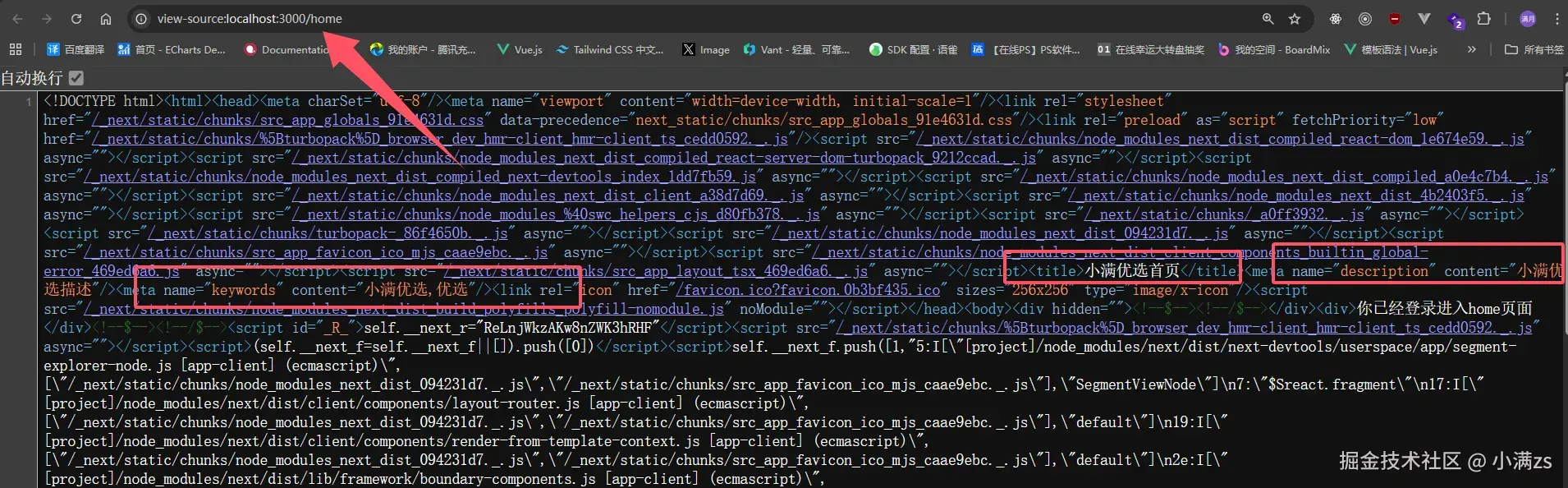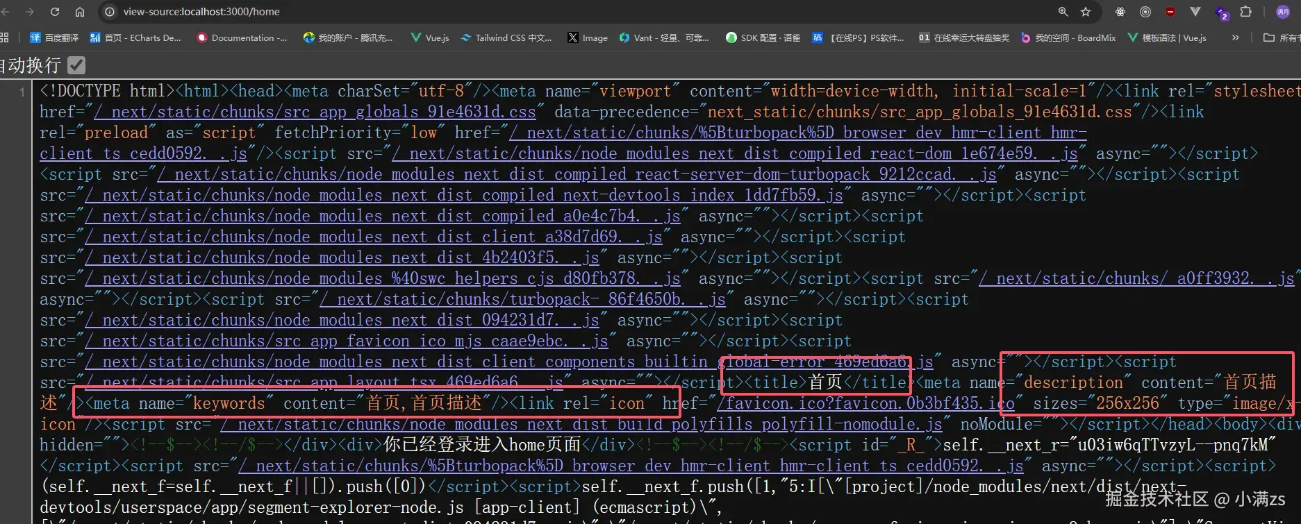 在原生 HTML 里,它们大致对应 <head> 中的 <title>、<meta name="description">、<meta name="keywords"> 等。使用 App Router 时,Next.js 通过 export const metadata 或 generateMetadata 生成上述标签,由框架写入文档头部,无需手写整段 <head>。