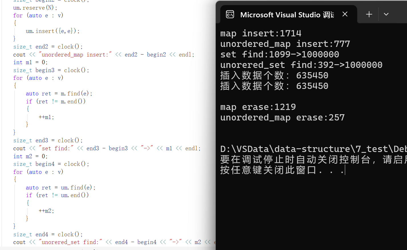 cout << "unorered_set find:" << end4 - begin4 << "->" << m2 << endl;