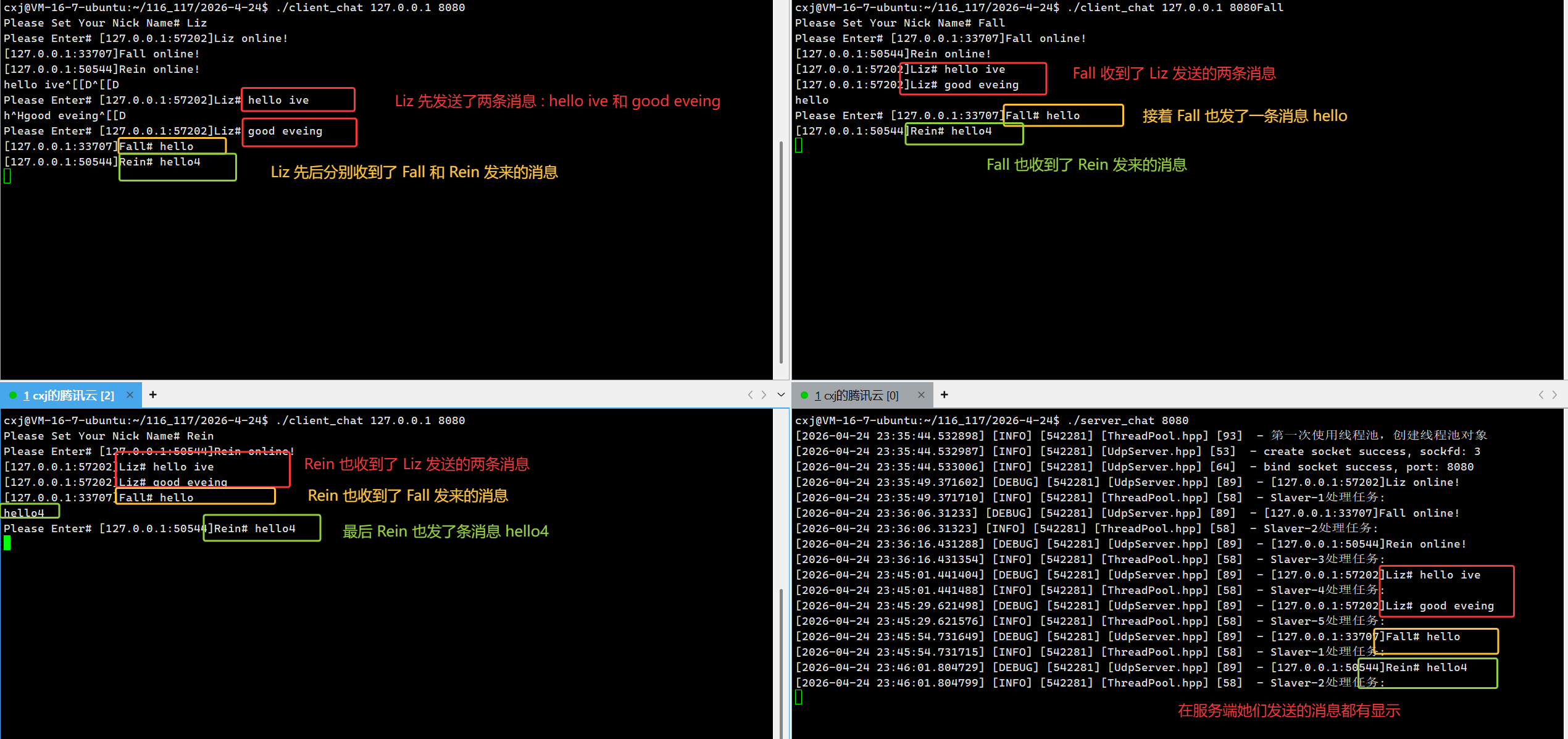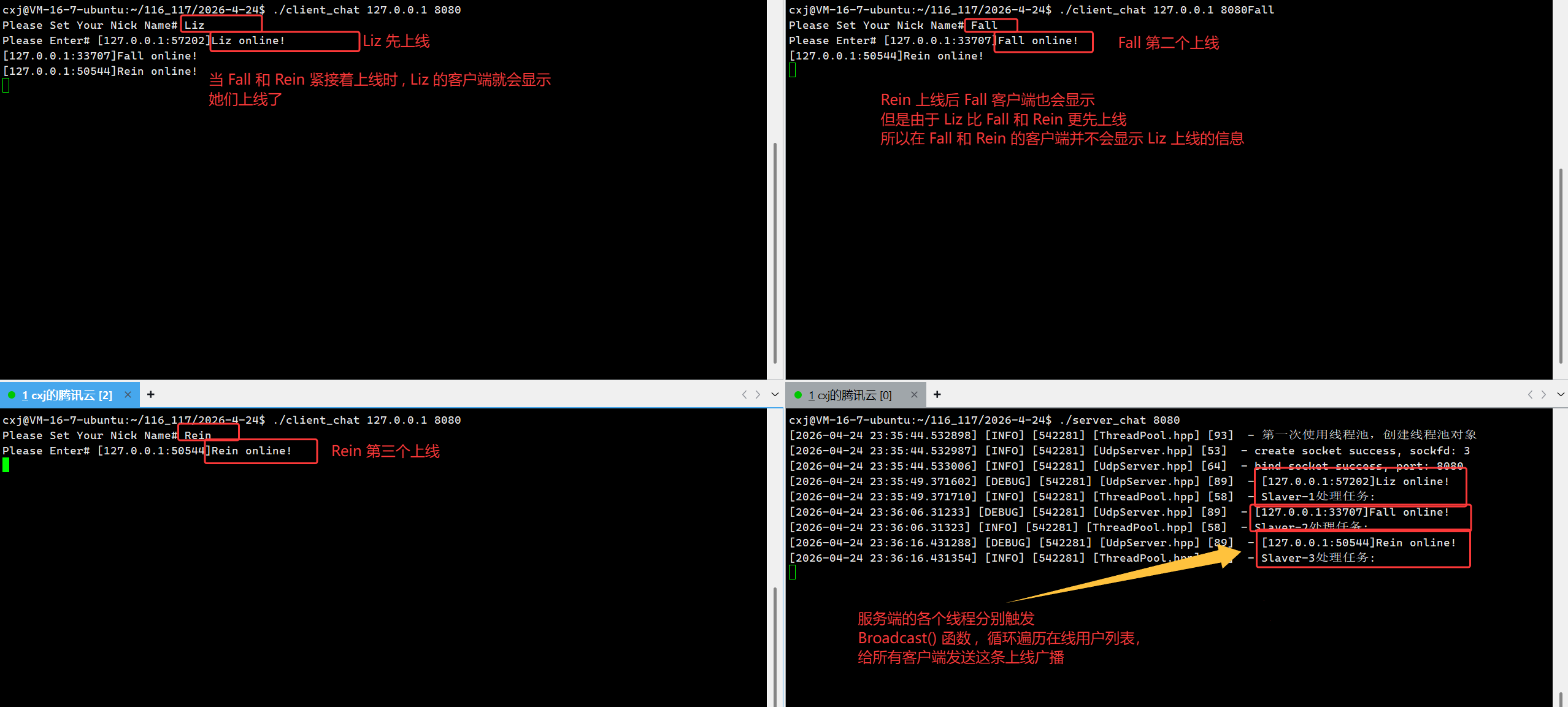 希望这篇完整的讲解,能帮助你真正理解 UDP 聊天室的运行原理、回调的本质、线程池的作用,以及服务端与客户端之间的完整通信链路。未来无论学习 TCP、HTTP、后端框架,还是分布式服务,这套基础思想都将成为你最扎实的根基。