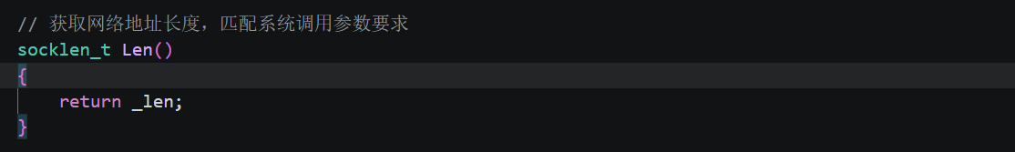 recvfrom、sendto 等系统调用,第二个必传参数就是地址长度。这个函数直接返回预初始化的_len,匹配系统调用参数格式。