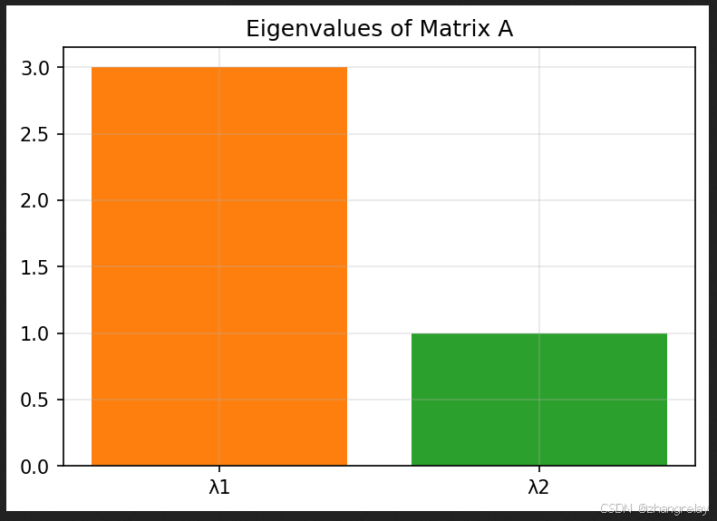 这段代码就是把矩阵隐藏的「先天属性」直接扒出来,还用柱状图画出特征值大小,肉眼就能看出:哪个方向拉伸更强、哪个方向变化更弱。