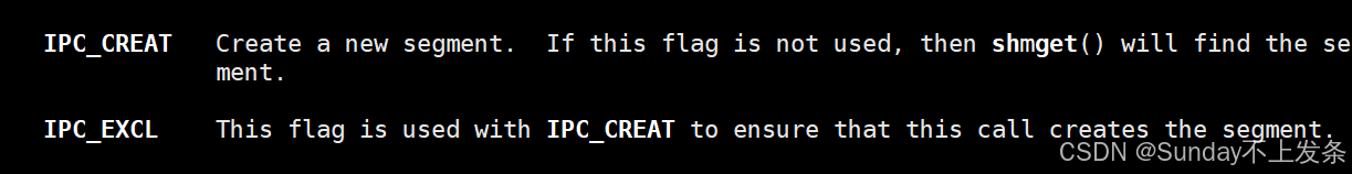 **IPC_CREAT | IPC_EXCL:**根据key查找,不存在就创建,存在则报错返回,所以该标志位组合用来创建全新的共享内存;