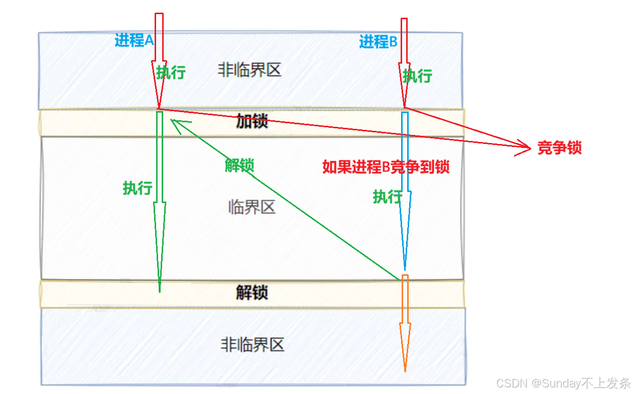 📳那我们对这部分代码(临界区)进行约束一下,保证任意时刻只有一个操作流访问共享资源。