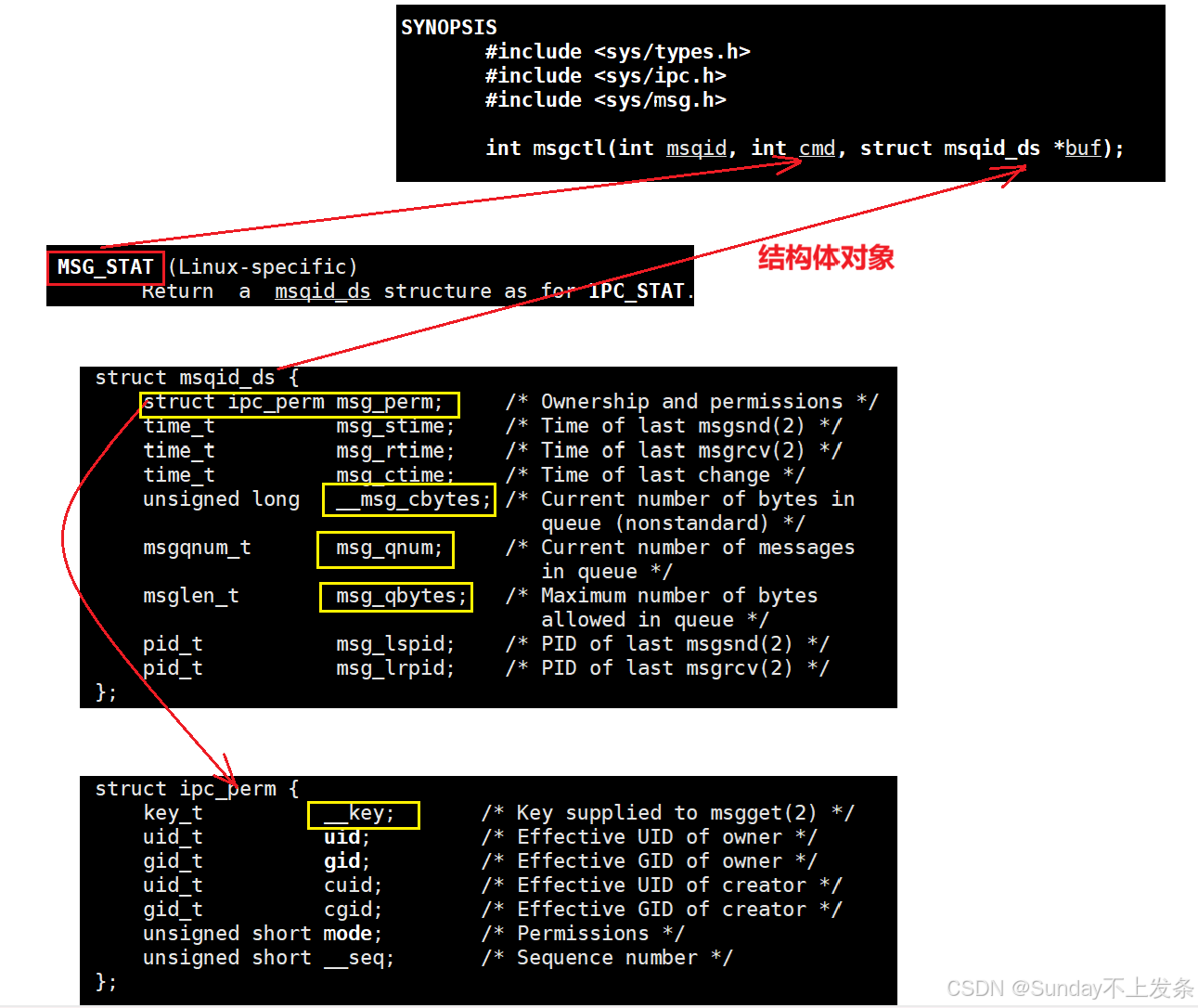 由于他们第一个属性都是ipc_perm,所以就可以用kern_ipc_prem指向一个共享内存,消息队列或者信号量对象(结构体对象的地址就是结构体首元素的地址)。
