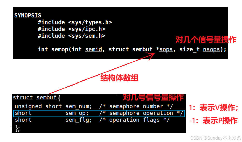 一次可能对多个信号量操作,一般都是一个,所以*sops是一个结构体数组。