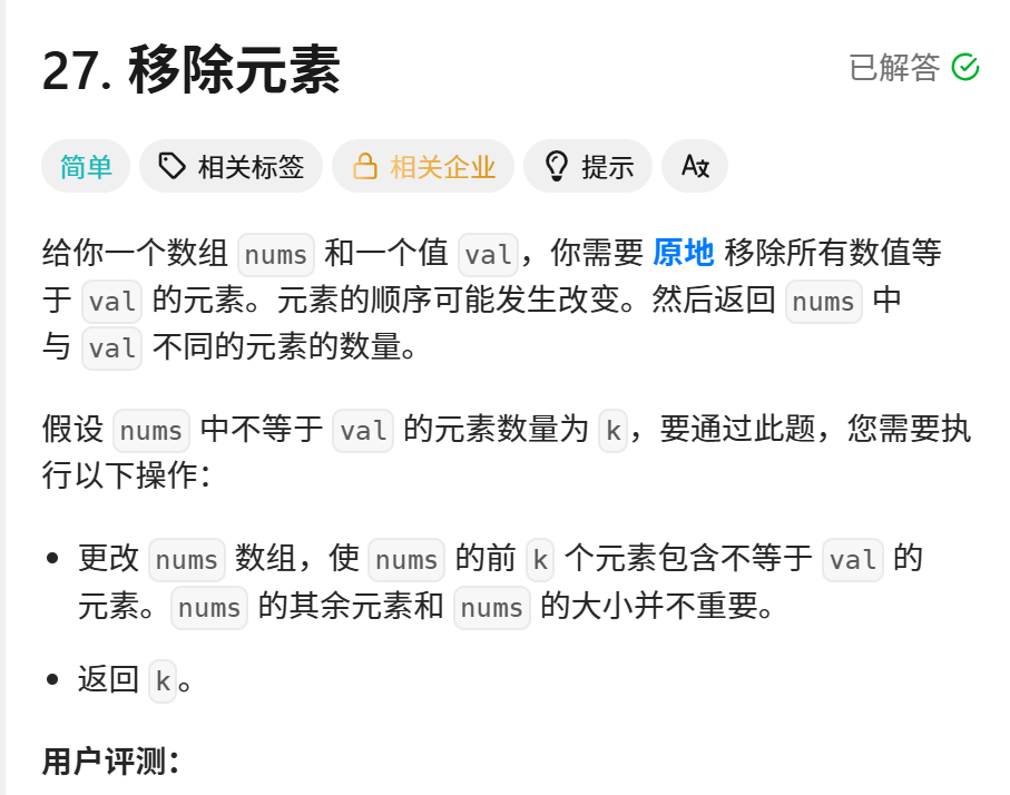 https://leetcode.cn/problems/remove-element/description/