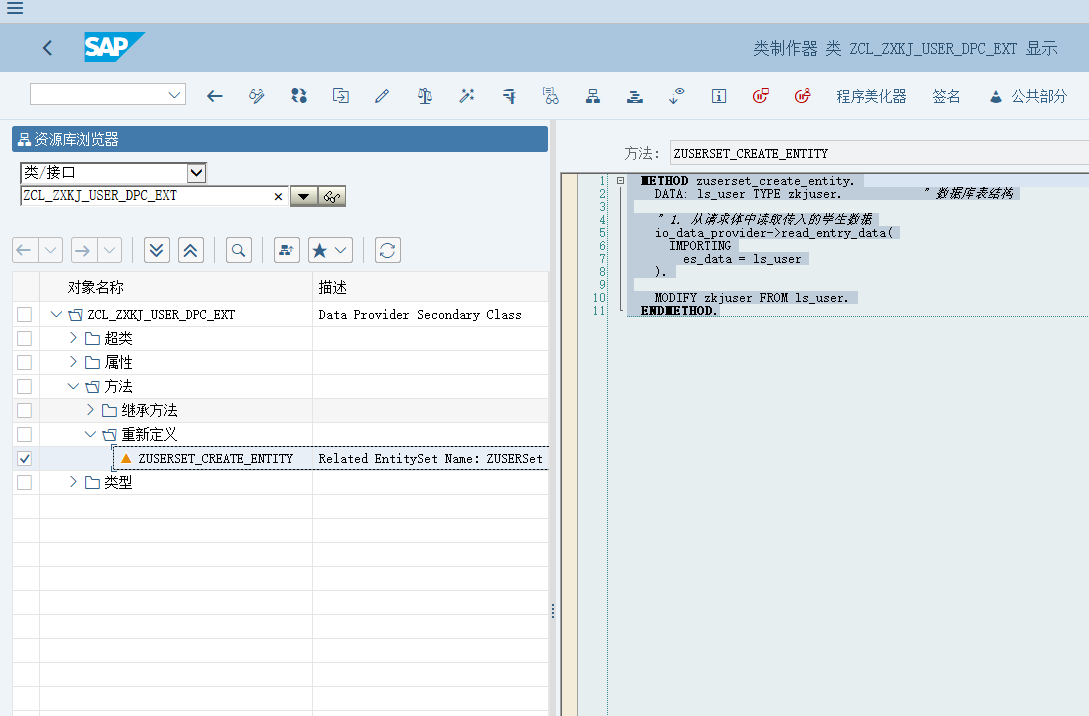 | 核心方法 | <EntitySet>_CREATE_ENTITY(在 DPC_EXT 中重写) |
