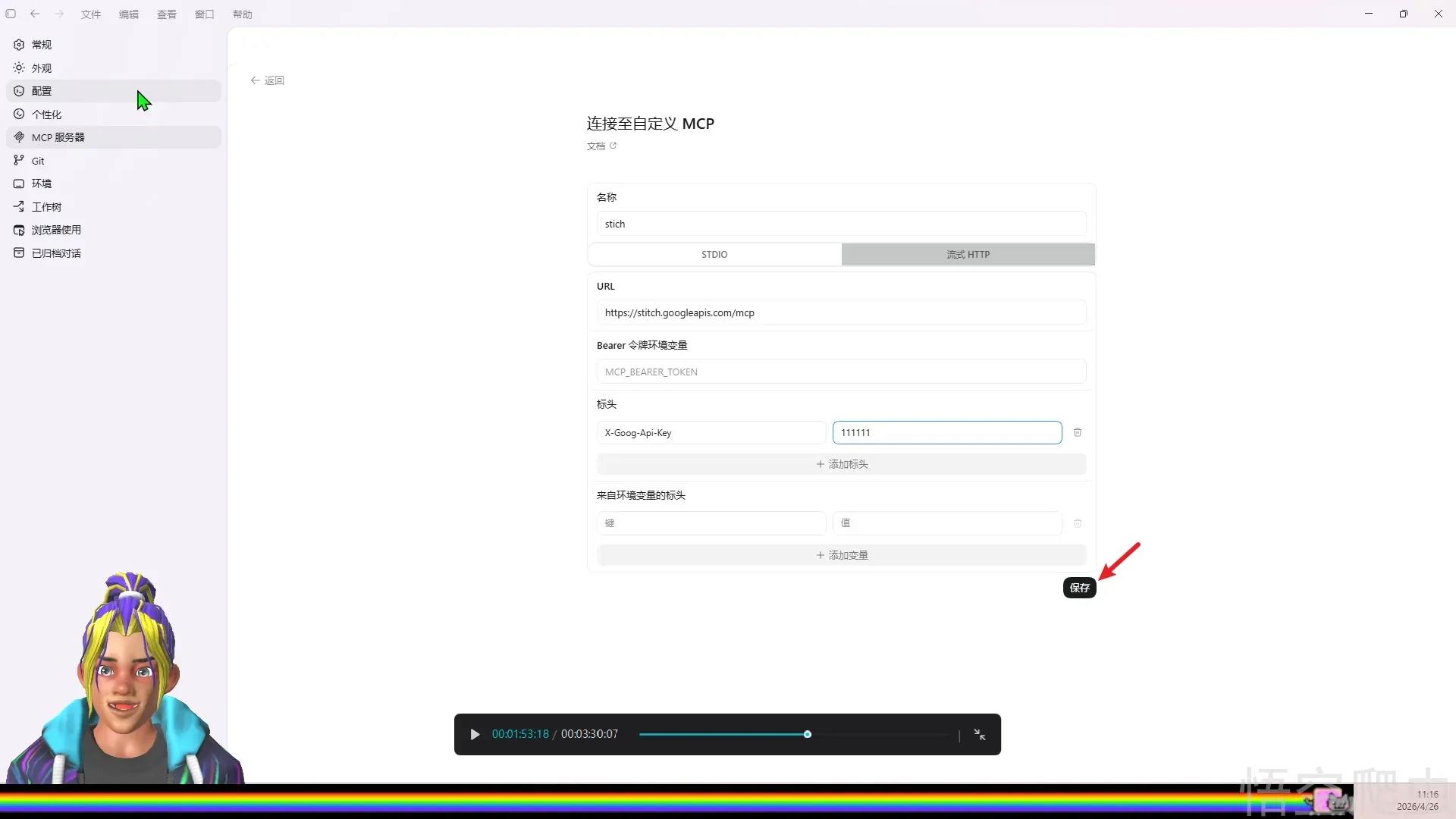 今天这期视频教大家,如何通过MCP协议将stich接入code X。