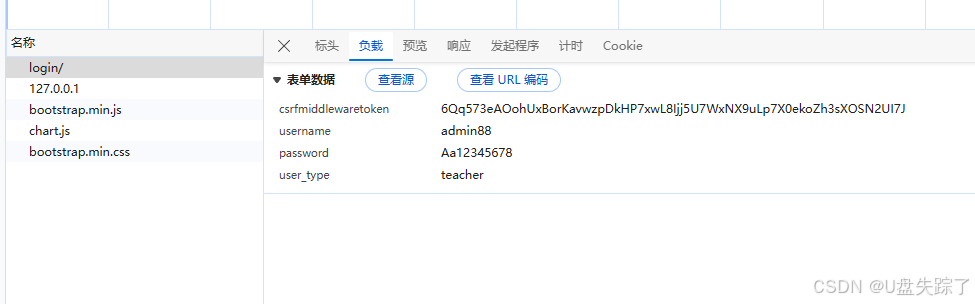 准备登录数据 :用户名、密码、用户类型、CSRF Token