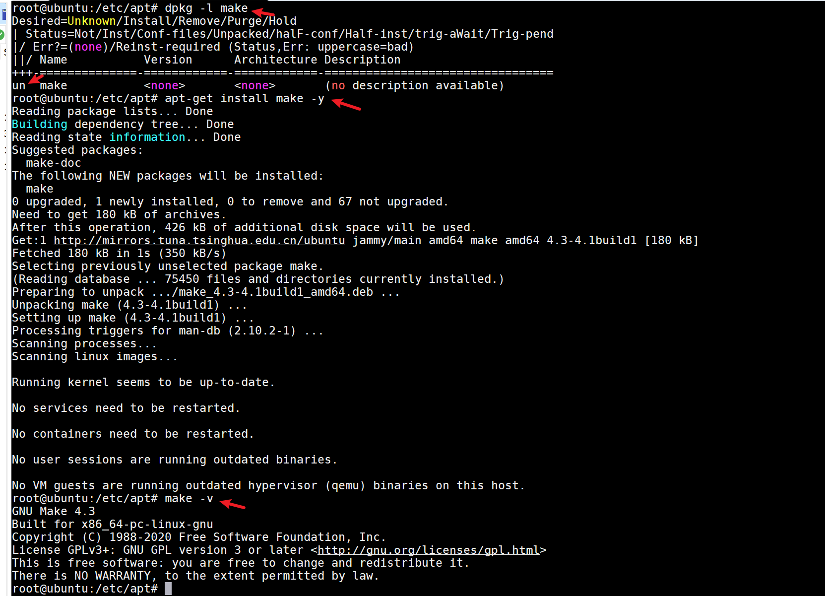 echo 'deb file://mnt jammy main' > /etc/apt/sources.list- jammy : 当前版本的代号,可以通过
