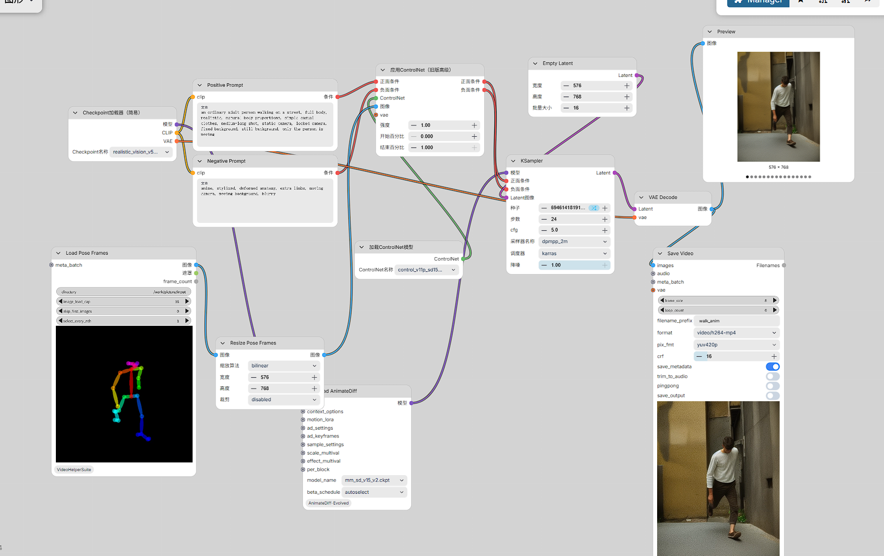 关键词: ComfyUI、AnimateDiff、ControlNet、OpenPose、Walking Animation、动作控制、动作验证