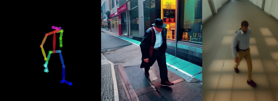 加载 OpenPose 对应的 ControlNet 模型,并将骨骼图序列作为控制输入。