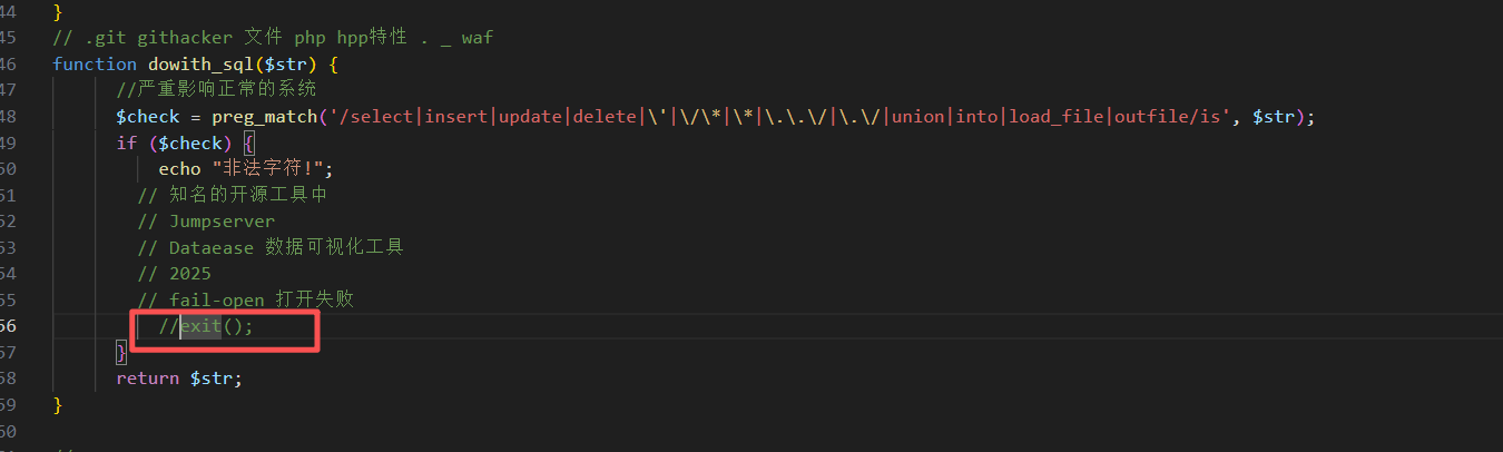 $request接参数时,i.d会转换成i_d,php特性两个相同参数接收最后一个,此时绕过dowith_sql函数,在request_uri时i.d不变,此时同时存在i_d,i.d