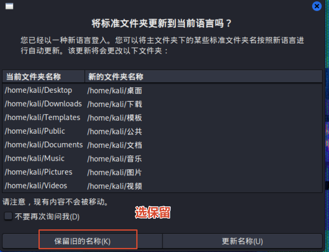 5.等待开机输入账号和密码完成中文设置,然后保留旧名称