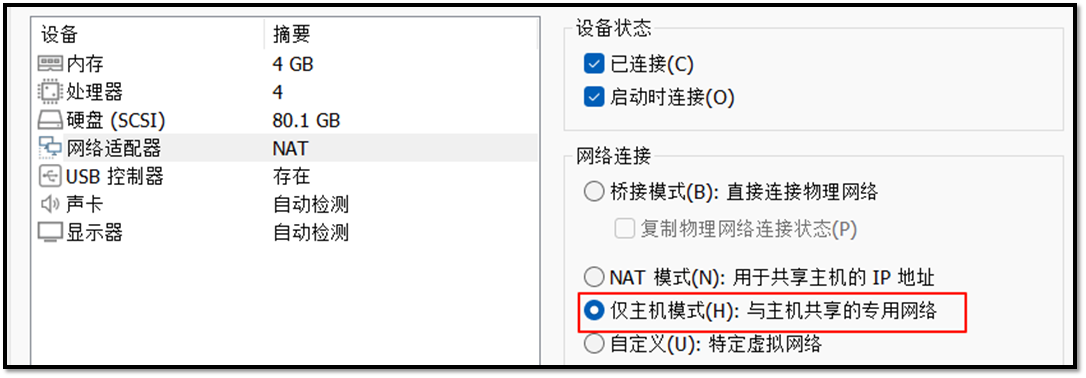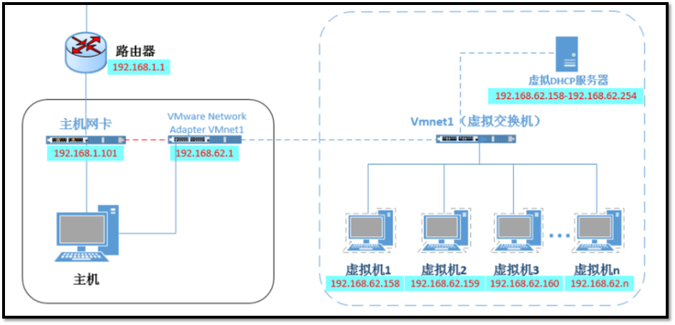 VMnet1:仅主机模式