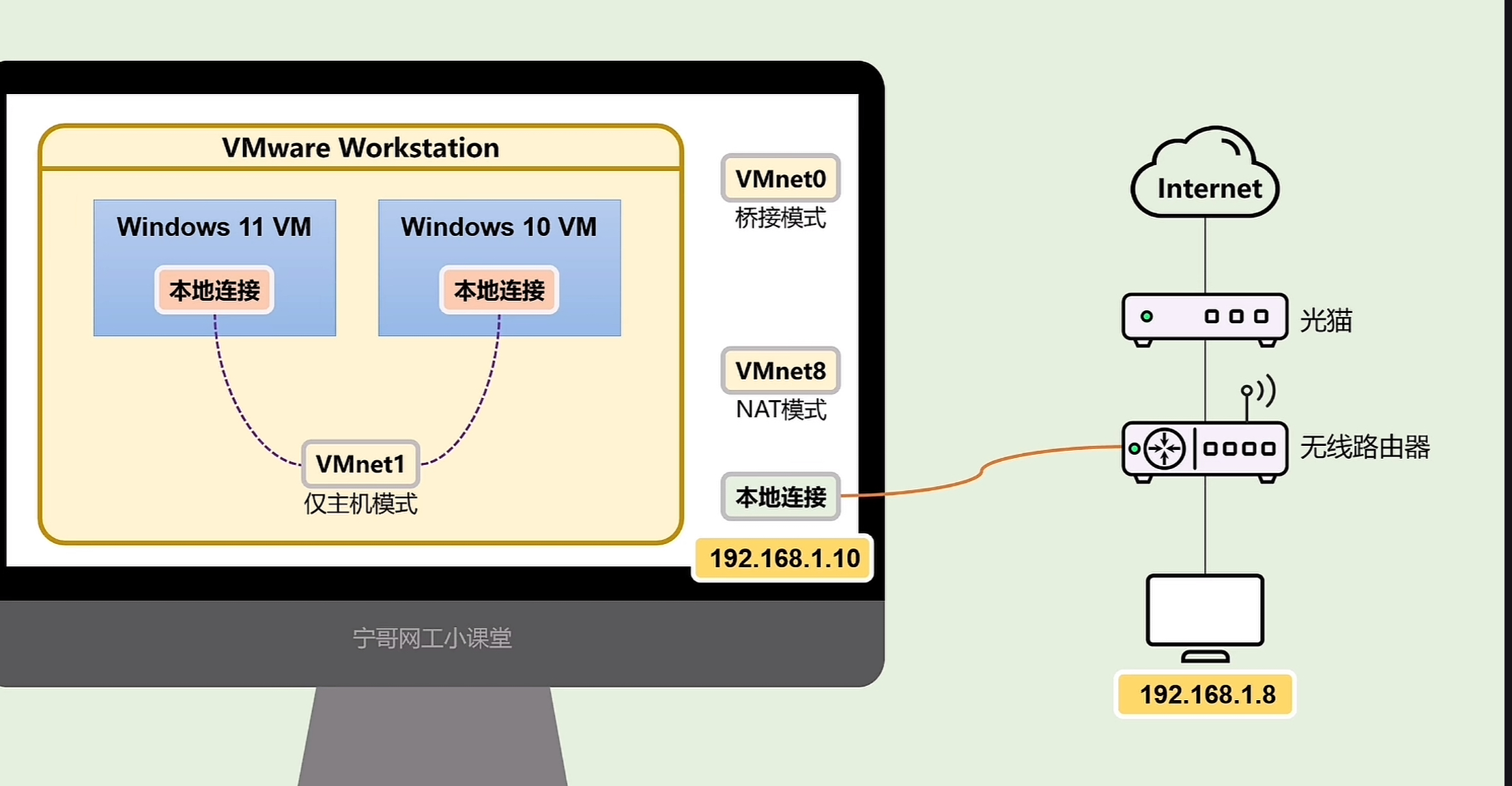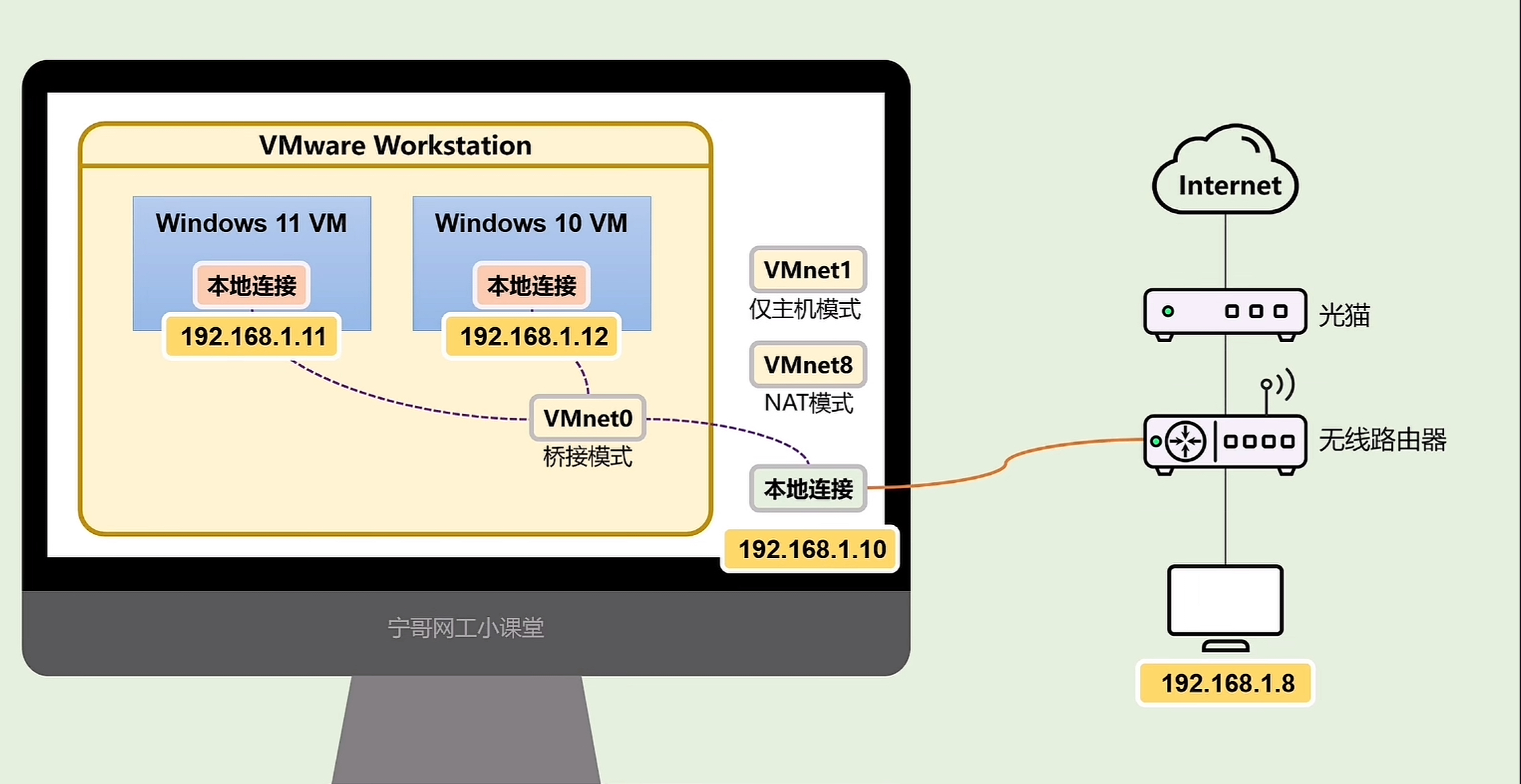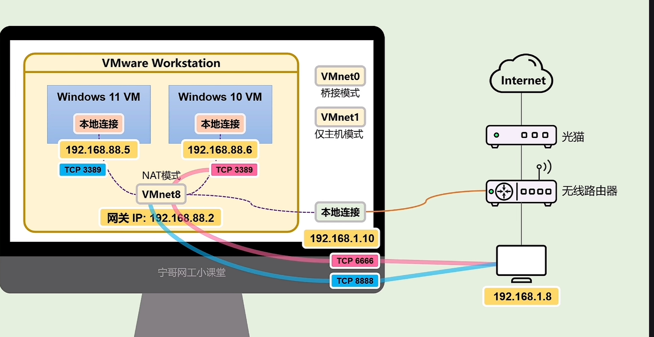 - 虚拟机生成一个内网私网IP(比如 192.168.x.x)