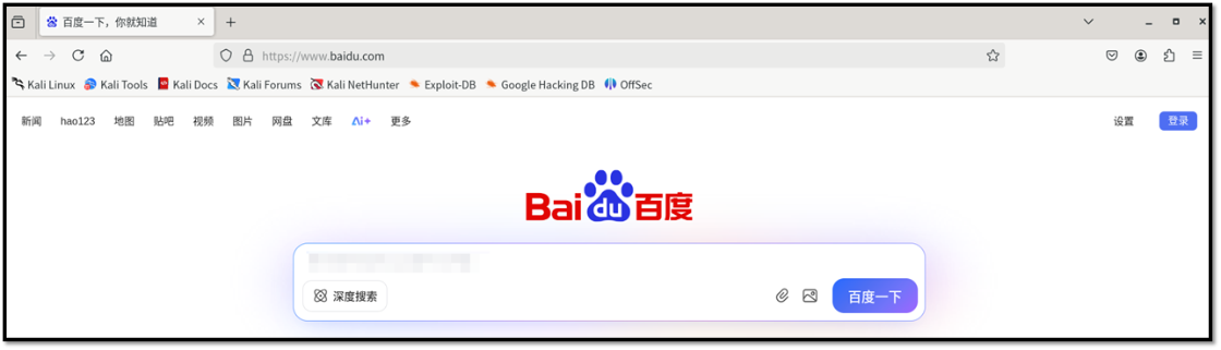 在kali中打开浏览器,输入百度的地址, 如果有显示,代表网络正常