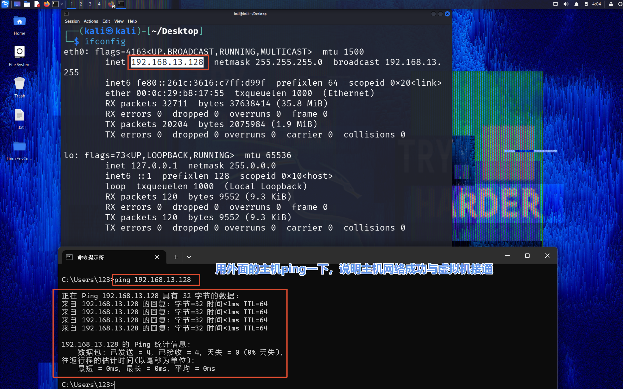 用主机ping一下虚拟机