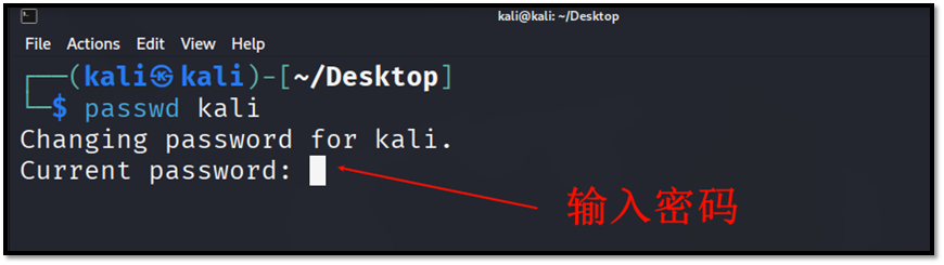 kali中默认账号密码:kali / kali,如果想要更改密码使用如下的命令