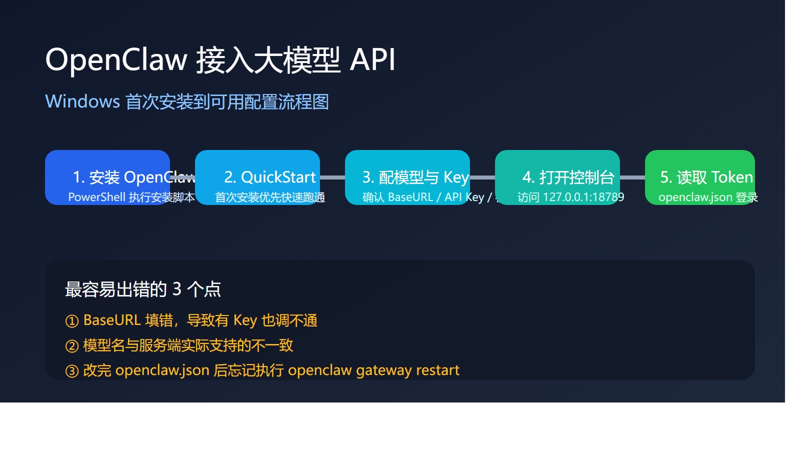 让 OpenClaw 从 0 到真正跑起来,并顺利接通大模型 API。