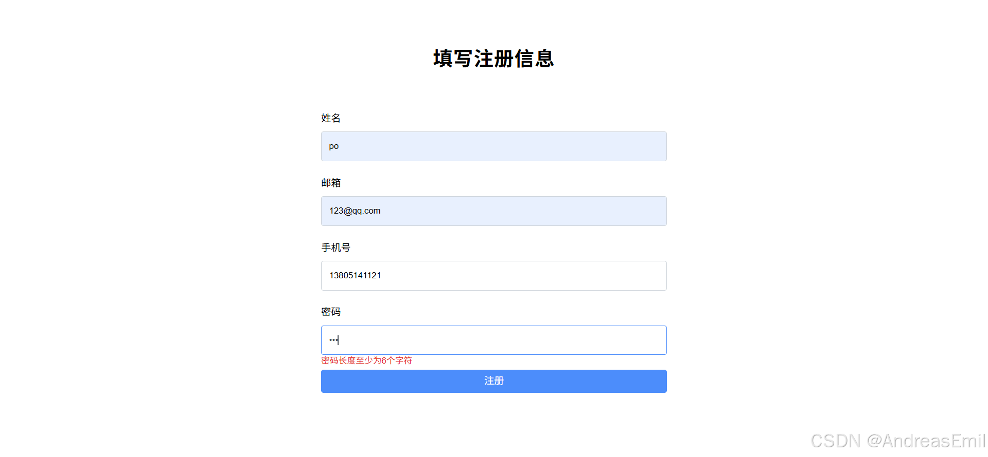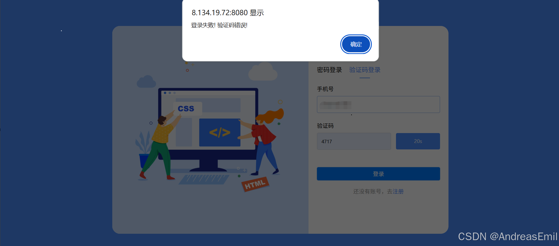 测试场景三:手机号填写错误和密码填写正确(手机号格式正确)