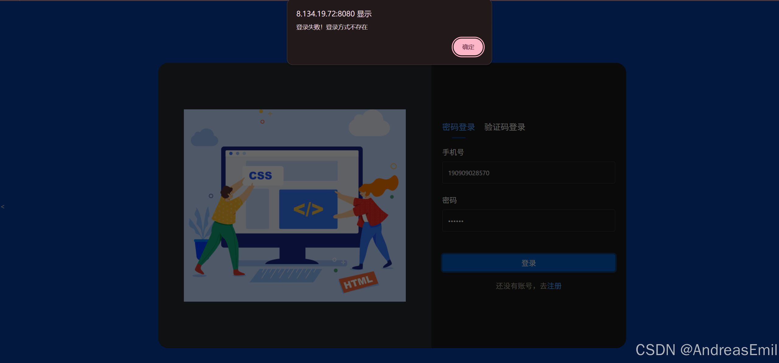预期结果:弹窗提醒"登录失败,登录方式不存在"