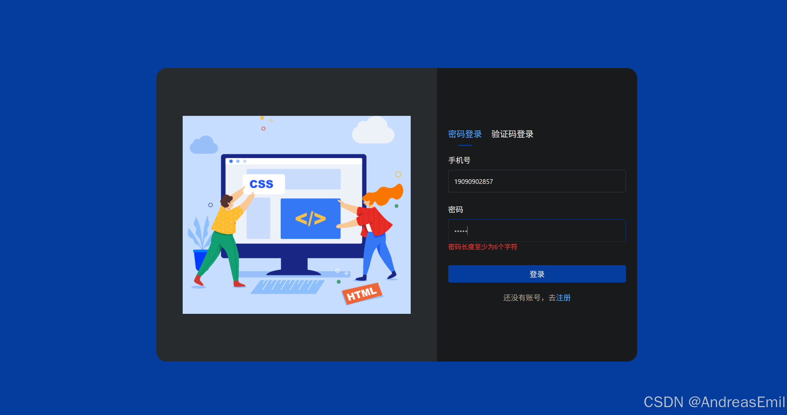 测试场景四:手机号正确,密码错误(密码格式错误)