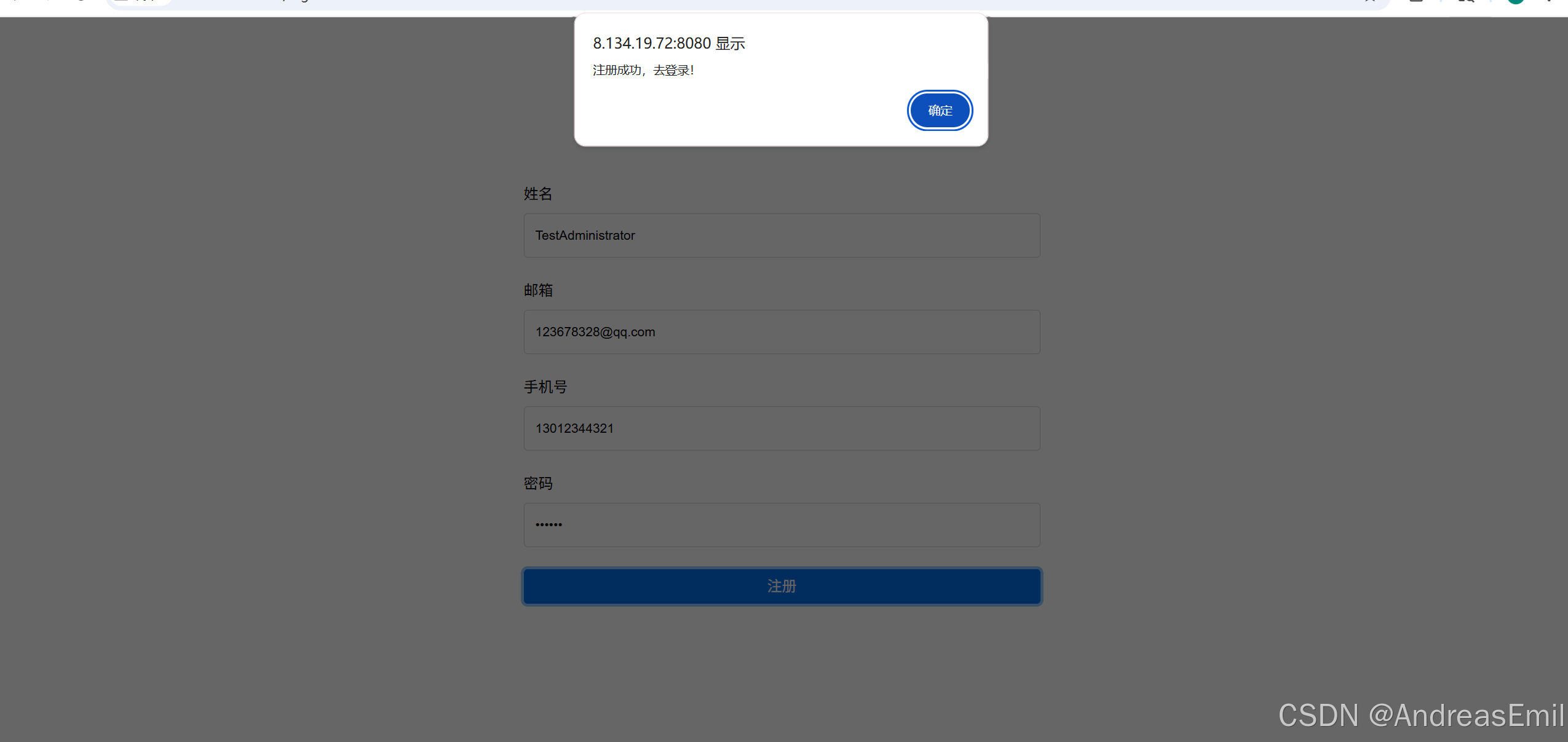 预测场景:弹窗"注册成功,点击确定",成功跳转登录页