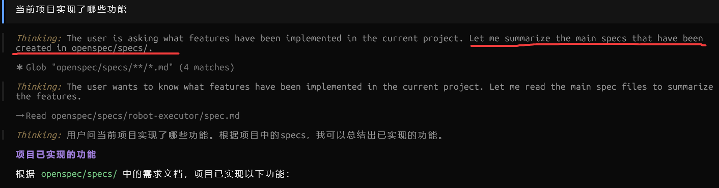 - AI 会理解你的意图,并自动编辑 proposal.md、tasks.md 和 spec.md 等文件。