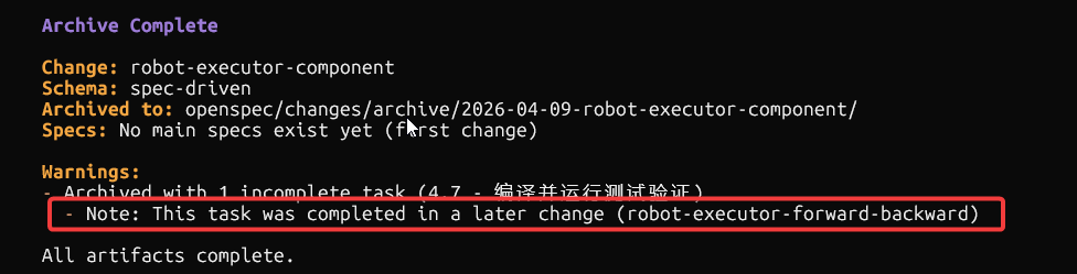 执行/opsx-archive robot-executor-forward-backward
