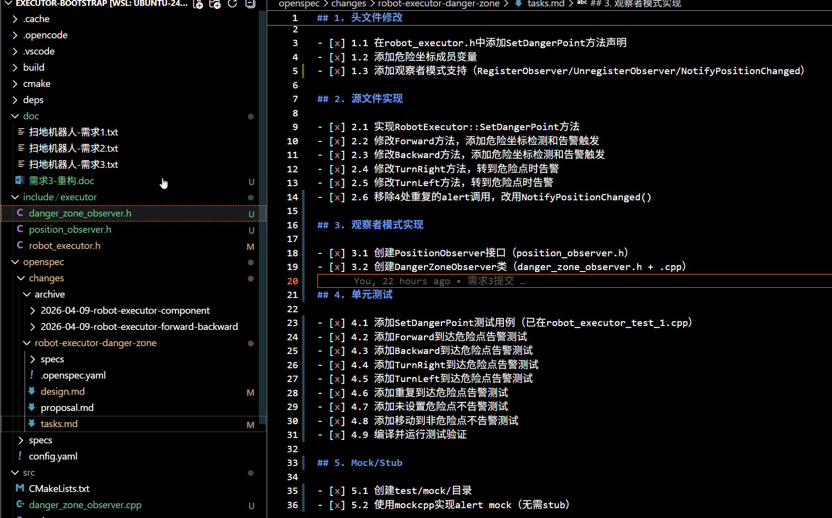 需求robot-executor-danger-zone完成后,代码存在以下问题: