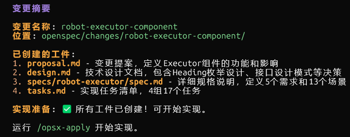 执行/opsx-apply robot-executor-componen