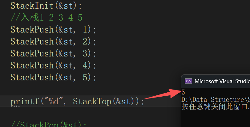 StackPush(&st, 5);