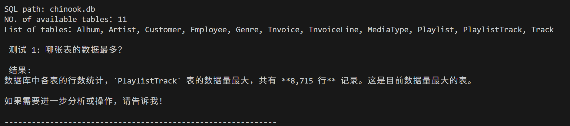 - SQLDatabase: 连接到SQLite数据库(Chinook数据库)