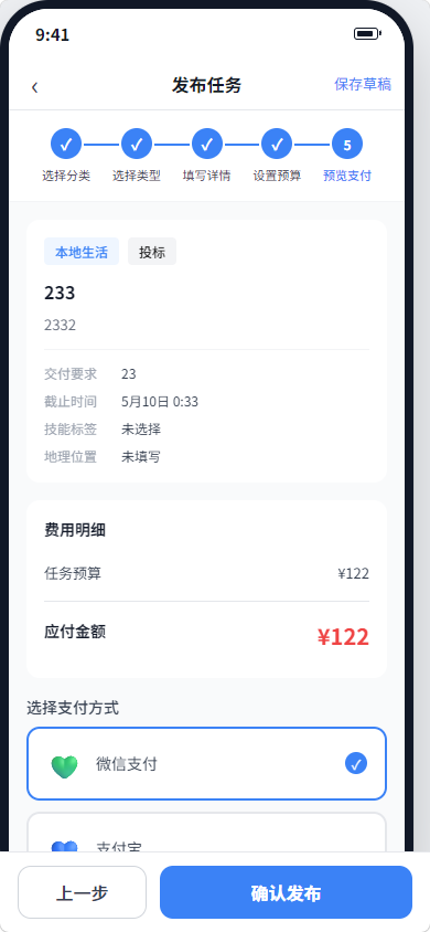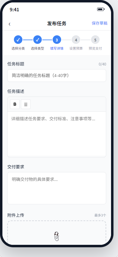 | 7 步发布向导 | 引导用户完成任务发布的完整流程 |