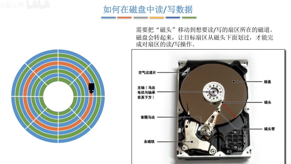 ③磁盘旋转的过程中,指定的扇区会从磁头下面划过,这样就完成了对指定扇区的读/写。